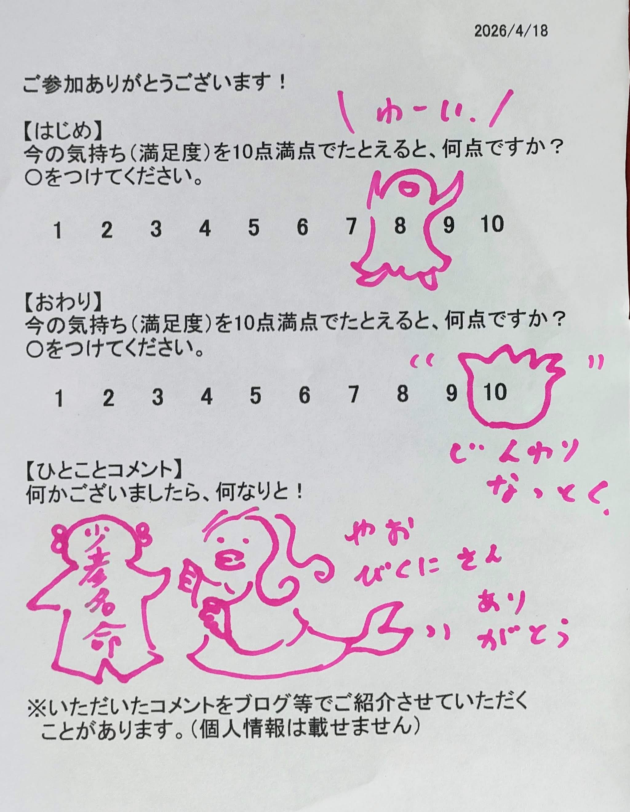 ★他の方の分もたくさん参加できて思いもよらない感情を感じることができました。